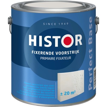 Histor Perfect Base voorstrijk fixerend wit 2,5 liter is een waterverdunbaar voorstrijkmiddel dat binnen én buiten gebruikt kan worden. Met de fixerende voorstrijk zet u poederende ondergronden vast en vermindert u zuigingsverschillen. Hierdoor vermindert u vlekken bij overschilderen. De inhoudsmaat is 2,5 liter.