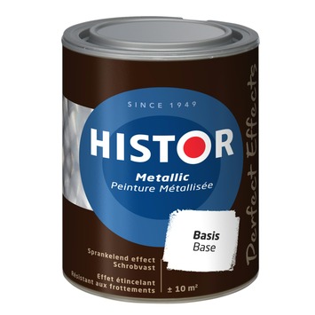 Breng je muren tot leven met de gemakkelijk verwerkbare Histor Perfect Effects muurverf metallic. De verf is watergedragen en eenmaal opgedroogd geeft de verf je muren een sprankelend effect. De verf schrobvast, dat betekend dat de verf zeer geschikt is voor ruimten die gevoelig zijn voor vuil worden, zoals keuken, kinderkamer of hal. Voor het beste resultaat met Histor Perfect Finish gebruik je eerst witte Histor dekkende muur voorstrijk.