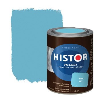 Histor Perfect Effect muurverf oceaan metallic 1 liter geeft extra glans aan uw omgeving. De reflecterende metallic deeltjes in deze muurverf zorgen voor een schitterend eindresultaat. Op een structuurondergrond bereikt u extra effect. De verf is kant-en-klaar verkrijgbaar, maar ook in een aantal kleuren op de mengmachine bij de GAMMA bouwmarkt. Laat het licht spelen met deze unieke metallic verf. De inhoudsmaat is 1 liter.