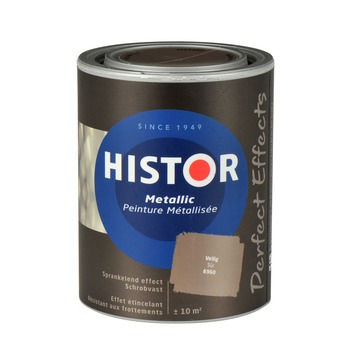 Histor Perfect Effect muurverf veilig metallic 1 liter geeft extra glans aan uw omgeving. De reflecterende metallic deeltjes in deze muurverf zorgen voor een schitterend eindresultaat. Op een structuurondergrond bereikt u extra effect. De verf is kant-en-klaar verkrijgbaar, maar ook in een aantal kleuren op de mengmachine bij de GAMMA bouwmarkt. Laat het licht spelen met deze unieke metallic verf. De inhoudsmaat is 1 liter.