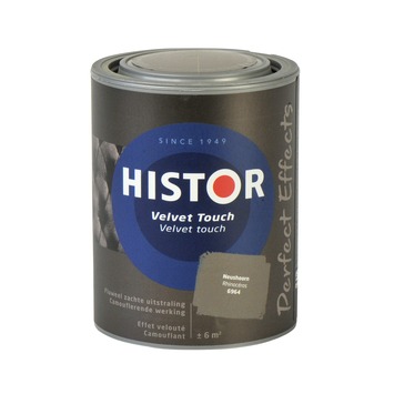 Aan Histor Perfect Effects Muurverf 1l velvet touch 6964 is een fijn fluweelpoeder toegevoegd. Daarmee geef je je muren een matzachte uitstraling met een lichte schaduw. Histor Perfect Effects Muurverf 1l velvet touch 6946 is op de mengmachine te verkrijgen in een aantal kleuren.