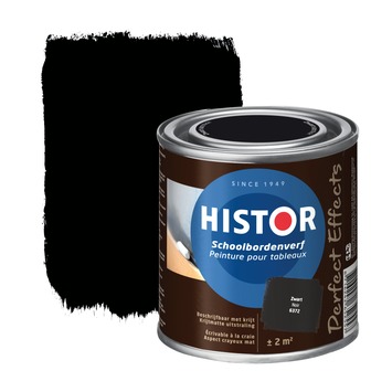 Met Histor Perfect Effect schoolbordverf zwart mat 250 ml maakt u van iedere muur, deur, tafel of kast een eigen schoolbord. Dit is niet alleen handig, maar geeft ook een speels effect aan uw interieur. U kunt de verf ook gebruiken als zeer matte muurverf. De inhoudsmaat is 250 ml. Naast de standaard beschikbare kleuren is deze verf in meer dan 30.000 verschillende kleuren te verkrijgen bij onze verfmengbalie in de GAMMA bouwmarkt.