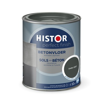 Histor Perfect Finish betonvloer RAL 7043 dark grey zijdeglans 750 ml is een watergedragen verf, speciaal ontwikkeld voor het schilderen van betonnen vloeren. Grondverf is niet nodig, je kan de verf direct op de ondergrond aanbrengen. De verf is extreem slijtvast, extra dekkend en geurarm. De verf is makkelijk aan te brengen en je betonnen vloer is snel weer beloopbaar. Na 2 uur is de verf stofdroog en na 6 uur overschilderbaar. Naast de kant-en-klare kleuren is deze verf in iedere gewenste kleur te mengen bij de verfmengbalie in de GAMMA bouwmarkt. Een blik van 750 ml is voldoende voor ongeveer 10m2.