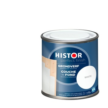 Histor Perfect Finish grondverf 7000 wit 250 ml is geschikt voor hout, metaal en kunststof. De grondverf is op waterbasis en kan gebruikt worden over elke vorige verfsoort heen, dus ook over terpentineverf. Als je kaal hout, metaal of kunststof hebt, breng dan altijd ruim voldoende grondverf aan voor een goede hechting van de laklaag. Histor Perfect Finish grondverf zorgt voor deze goede hechting, de grondverf is optimaal dekkend en geurarm. De verf is makkelijk aan te brengen en is sneldrogend. Na 1 uur is de verf stofdroog en na 5 uur overschilderbaar. Standaard is Histor Perfect Finish grondverf beschikbaar in wit en grijs, maar deze grondverf is ook in iedere gewenste kleur te mengen bij de verfmengbalie in de GAMMA bouwmarkt. Een blik van 250 ml is voldoende voor ongeveer 4m2.