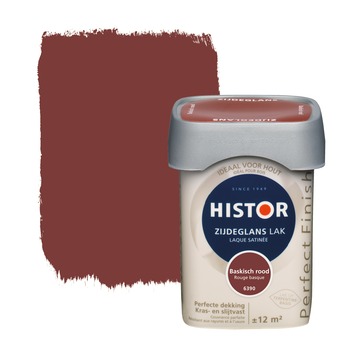 Histor Perfect Finish lak baskisch rood zijdeglans 750 ml is een terpentinegedragen lak met een zijdeglans. De lak dekt goed en is kras- en slijtvast. De Perfect Finish lak is geschikt voor het aflakken van hout en andere ondergronden. Deze lakverf heeft een droogtijd van ongeveer 3 uur en is na 16 uur overschilderbaar. Roer de lak voor gebruik goed door. Naast de standaard beschikbare kleuren is deze verf in meer dan 30.000 verschillende kleuren te verkrijgen bij onze verfmengbalie in de GAMMA bouwmarkt. De inhoudsmaat is 750 ml.