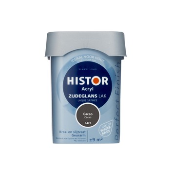 Histor Perfect Finish lak cacao zijdeglans 750 ml is een watergedragen lak met een zijdeglans. De lak dekt goed en is kras- en slijtvast. De Perfect Finish lak is geschikt voor het aflakken van hout en andere ondergronden. Deze lakverf heeft een droogtijd van ongeveer 1 uur, is na 5 uur overschilderbaar en geeft geen sterke verfgeur af. Roer de lak voor gebruik goed door. De inhoudsmaat is 750 ml. Naast de standaard beschikbare kleuren is deze verf in meer dan 30.000 verschillende kleuren te verkrijgen bij onze verfmengbalie in de GAMMA bouwmarkt.