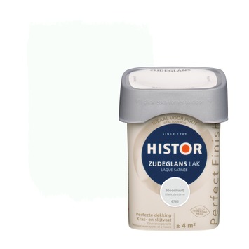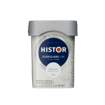 Histor Perfect Finish lak hoornwit zijdeglans 250 ml is een terpentinegedragen lak met een subtiele glans. De lak dekt goed en is kras- en slijtvast. De Perfect Finish lak is geschikt voor het aflakken van hout en andere ondergronden. Deze lakverf heeft een droogtijd van ongeveer 3 uur en is na 16 uur overschilderbaar. Roer de lak voor gebruik goed door. Naast de standaard beschikbare kleuren is deze verf in meer dan 30.000 verschillende kleuren te verkrijgen bij onze verfmengbalie in de GAMMA bouwmarkt. Witte en lichte tinten op terpentinebasis kunnen bij weinig daglicht vergelen, in dit geval kunt u het beste Histor Perfect Finish acryl lak gebruiken. De inhoudsmaat is 250 ml.