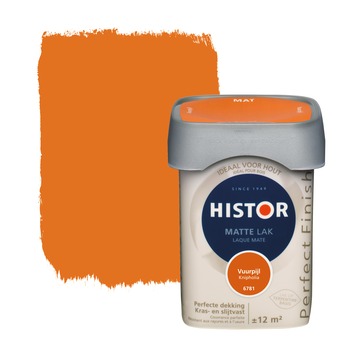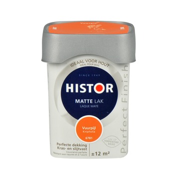 Histor Perfect Finish lak vuurpijl mat 750 ml is een terpentinegedragen lak met een zachte, matte uitstraling. De lak dekt goed en is kras- en slijtvast. De Perfect Finish lak is geschikt voor het aflakken van hout en andere ondergronden. Deze lakverf heeft een droogtijd van ongeveer 3 uur en is na 16 uur overschilderbaar. Roer de lak voor gebruik goed door. Naast de standaard beschikbare kleuren is deze verf in meer dan 30.000 verschillende kleuren te verkrijgen bij onze verfmengbalie in de GAMMA bouwmarkt. De inhoudsmaat is 750 ml.