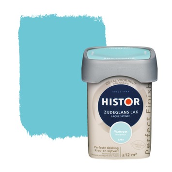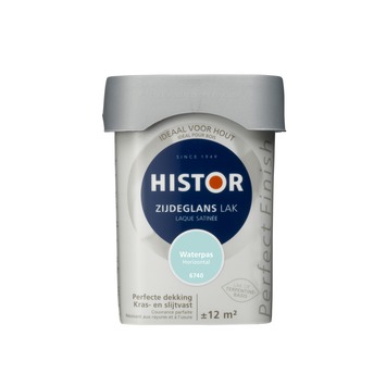 Histor Perfect Finish lak waterpas zijdeglans 750 ml is een terpentinegedragen lak met een zijdeglans. De lak dekt goed en is kras- en slijtvast. De Perfect Finish lak is geschikt voor het aflakken van hout en andere ondergronden. Deze lakverf heeft een droogtijd van ongeveer 3 uur en is na 16 uur overschilderbaar. Roer de lak voor gebruik goed door. Naast de standaard beschikbare kleuren is deze verf in meer dan 30.000 verschillende kleuren te verkrijgen bij onze verfmengbalie in de GAMMA bouwmarkt. De inhoudsmaat is 750 ml.