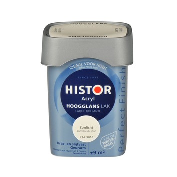 Histor Perfect Finish lak zonlicht RAL 9010 zijdeglans 750 ml is een watergedragen lak met een zijdeglans. De lak dekt goed en is kras- en slijtvast. De Perfect Finish lak is geschikt voor het aflakken van hout en andere ondergronden. Deze lakverf heeft een droogtijd van ongeveer 1 uur, is na 5 uur overschilderbaar en geeft geen sterke verfgeur af. Roer de lak voor gebruik goed door. Naast de standaard beschikbare kleuren is deze verf in meer dan 30.000 verschillende kleuren te verkrijgen bij onze verfmengbalie in de GAMMA bouwmarkt. Witte en lichte tinten op terpentinebasis kunnen bij weinig daglicht vergelen, in dit geval is Histor Perfect Finish acryl lak dan ook de beste keuze. De inhoudsmaat is 750 ml.