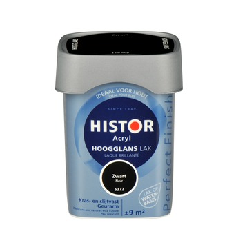Histor Perfect Finish lak zwart hoogglans 750 ml is een watergedragen lak met een optimale glans. De lak dekt goed en is kras- en slijtvast. De Perfect Finish lak is geschikt voor het aflakken van hout en andere ondergronden. Deze lakverf heeft een droogtijd van ongeveer 1 uur, is na 5 uur overschilderbaar en geeft geen sterke verfgeur af. Roer de lak voor gebruik goed door. De inhoudsmaat is 750 ml. Naast de standaard beschikbare kleuren is deze verf in meer dan 30.000 verschillende kleuren te verkrijgen bij onze verfmengbalie in de GAMMA bouwmarkt.