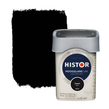 Histor Perfect Finish lak zwart hoogglans 750 ml is een terpentinegedragen lak met een optimale glans. De lak dekt goed en is kras- en slijtvast. De Perfect Finish lak is geschikt voor het aflakken van hout en andere ondergronden. Deze sterke lakverf heeft een droogtijd van ongeveer 3 uur en is na 16 uur overschilderbaar. Roer de lak voor gebruik goed door. Naast de standaard beschikbare kleuren is deze verf in meer dan 30.000 verschillende kleuren te verkrijgen bij onze verfmengbalie in de GAMMA bouwmarkt. De inhoudsmaat is 750 ml.
