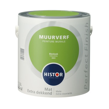 Histor Perfect Finish muurverf bieslook mat 2,5 liter is een watergedragen, extra dekkende muurverf voor binnen. U kunt deze muurverf gebruiken voor steenachtige ondergronden zoals pleisterwerk, metselwerk en beton, maar ook voor gips, gipskarton en hard- en zachtboard. Uiteindelijk zijn uw muren was- en schrobbaar. Naast de standaard beschikbare kleuren is deze verf in meer dan 30.000 verschillende kleuren te verkrijgen bij onze verfmengbalie in de GAMMA bouwmarkt. Voor het beste resultaat kunt u het beste vooraf een dekkende voorstrijk gebruiken. Zorg voor stijlvolle, matte muren in huis met Histor Perfect finish muurverf mat. De inhoudsmaat is 2,5 liter.