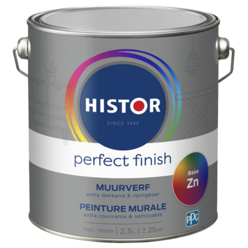 Histor Perfect Finish muurverf is een extra dekkende muurverf, ideaal voor alle muren in uw huis. Eenmaal aangebracht bent u verzekerd van een matte uitstraling die langdurig mooi blijft. Voor het beste resultaat kunt u het beste vooraf een dekkende voorstrijk gebruiken. Zorg voor stijlvolle, matte muren in huis met Histor Perfect finish muurverf.