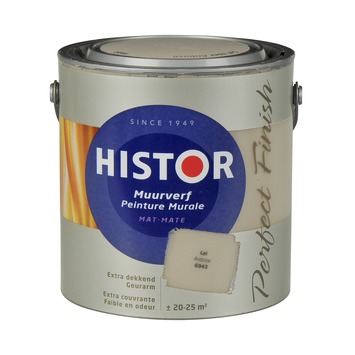 het kleurenpalet van Histor Perfect Finish is zo opgebouwd dat je in een handomdraai de mooiste kleurencombinaties kunt maken; van rustige ton-sur-ton tot uitgesproken kleurcontrasten. En als jouw favoriete kleur niet bij de kant-en-klaar kleuren zit, kun je je kleur laten mengen in extra mat, mat of glans. Je hebt keuze uit wel 1250 Histor kleuren. Voor het beste resultaat met Histor Perfect Finish Muurverf mat 2,5l 6943 lei gebruik je eerst Histor dekkende muur voorstrijk wit.