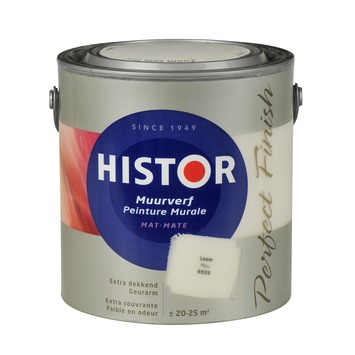 het kleurenpalet van Histor Perfect Finish is zo opgebouwd dat je in een handomdraai de mooiste kleurencombinaties kunt maken; van rustige ton-sur-ton tot uitgesproken kleurcontrasten. En als jouw favoriete kleur niet bij de kant-en-klaar kleuren zit, kun je je kleur laten mengen in extra mat, mat of glans. Je hebt keuze uit wel 1250 Histor kleuren. Voor het beste resultaat met Histor Perfect Finish Muurverf mat 2,5l 6939 loom gebruik je eerst Histor dekkende muur voorstrijk wit.