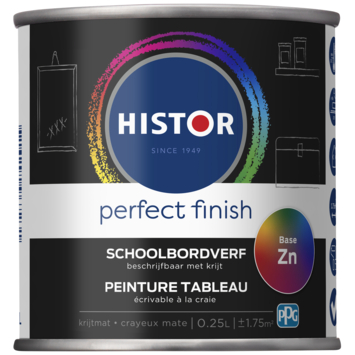 Histor Perfect Finish Schoolbordverf heeft een hoge dekkracht en hecht goed op geschilderd werk. Schoolbordverf is geschikt voor zowel muren als houtwerk. Hierbij kunt u denken aan een deur, een tafel of een kast. Eenmaal aangebracht is het goed beschrijfbaar met schoolkrijt. Dit is niet alleen handig, maar geeft ook een speels effect aan uw interieur.