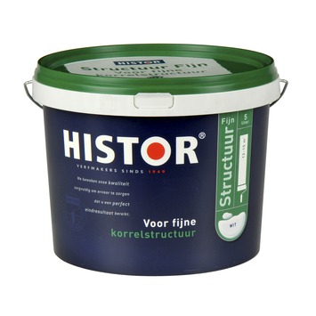 Histor Structuur Fijn 5l 7000 wit is een matte muurverf met een fijne korrelstructuur geschikt voor muren en plafonds binnenshuis. Deze uitstekend dekkende muurverf camoufleert kleine oneffenheden op je muur en is hierdoor geschikt voor het renoveren van je muren. Daarnaast is Histor Structuur Fijn door zijn korrelstructuur bestand tegen een stootje. Dat maakt de verf geschikt voor intensief gebruikte ruimtes zoals trappenhuis en gang. En mocht je over een aantal jaar een andere kleur willen, dan is Histor Structuur Fijn 5l 7000 wit goed overschilderbaar met een Histor Perfect Finish Muurverf.