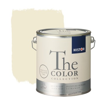 Histor The Color Collection muurverf dough yellow 2,5 liter is een met water te verdunnen, kalkmatte muurverf voor binnen. De Histor Color Collection bestaat uit een reeks vergrijsde, luxe kleuren welke gemakkelijk te combineren zijn. De muurverf dekt erg goed en geeft een luxe poedermat resultaat. De inhoudsmaat is 2,5 liter.