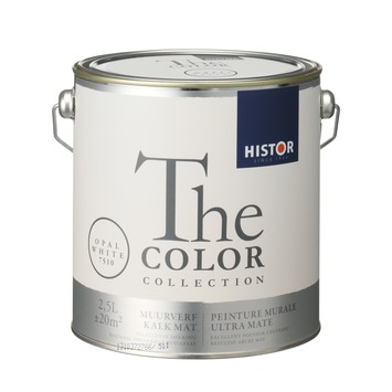 Histor The Color Collection muurverf opal white 2,5 liter is een met water te verdunnen, kalkmatte muurverf voor binnen. De Histor Color Collection bestaat uit een reeks vergrijsde, luxe kleuren welke gemakkelijk te combineren zijn. De muurverf dekt erg goed en geeft een luxe poedermat resultaat. De inhoudsmaat is 2,5 liter.