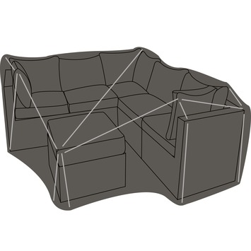 Met deze universele Hoes t.b.v. loungeset 250x250x80 cm bescherm je jouw loungeset tegen vuil en regen. De loungehoes heeft een afmeting van 250x250x80 cm en is gemaakt van polyester. Ook weert de hoes UV-licht en is waterafstotend. Zorg dat de hoes aan de onderkant een beetje open blijft, hierdoor kunnen de tuinmeubelen blijven ademen, dit voorkomt eventuele schimmelvorming. Inclusief opberghoes.