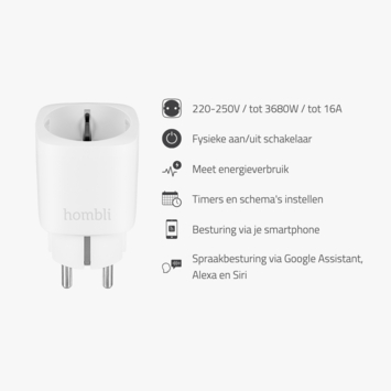 Met de Hombli slimme stekker maak je in een handomdraai elk gewoon apparaat in huis slimmer! Installeren gaat eenvoudig via je wifi netwerk en je telefoon. Bedien de slimme stekker vanaf waar dan ook met de gratis Hombli app en via spraakbesturing met Google Assistant en Amazon Alexa.
