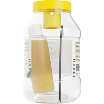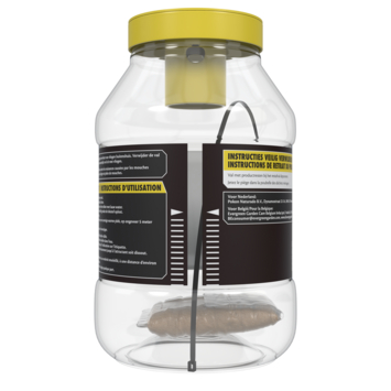 Deze alles-in-één val is ontworpen voor een heel seizoen zonder overlast. Hij is waterbestendig en eenvoudig te gebruiken. Begin met het draaien van de dop om de tiewrap en het flesje te verwijderen. Leeg de 125 ml lokstof in de val en vul aan met 250 ml lauw water tot de maatstreep. Schud voorzichtig om het mengsel te activeren en plaats de val buiten op een zonnige plek, vijf meter van menselijke activiteiten. Met de tiewrap hang je hem stevig op. Deze val werkt effectief tot drie weken; na drie weken of wanneer de val vol raakt, vul je hem eenvoudig bij. Hou het waterpeil goed in de gaten voor maximale effectiviteit.