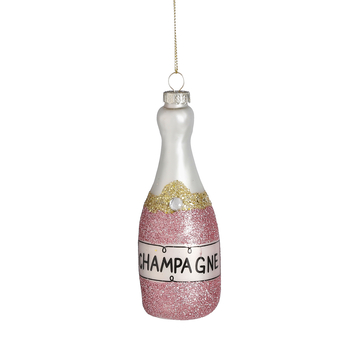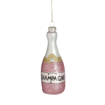 House of Seasons Ornament Champagne Fles - L5 x B5 x H13,5 cm - Roze