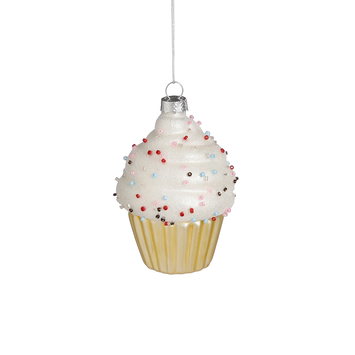 Een boom vol lekkernijen? Dat is mogelijk met dit ornament van House of Seasons in de vorm van cupcake. Vul de versieringen dan meteen aan met een lolly, een ijsje en suikerspinmachine uit dezelfde serie van House of Seasons voor een feestelijke en zoete uitstraling. Het ornament is gemaakt van glas en heeft de afmetingen L6,5 x B6,5 x H9,5 cm. Een geheel andere manier om de kerstboom te versieren!