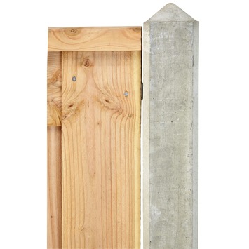 De gevoelige delen van de schutting die in de grond komen te staan, zoals de palen en onderplaten, worden gemaakt van beton. De kopmaat van deze duurzame betonpalen is 10x10cm en hebben een totale lengte van 2,8m. Aangezien 80cm van deze palen onder de grond wordt geplaatst, komt de zichtbare lengte van de palen uit op 2m. Je kunt de houtbetonschutting naar eigen smaak samenstellen, kies bijvoorbeeld voor lichtgrijs of antracietkleurig beton met een gladde afwerking of rotsmotief. Dit rotsmotief is aan beide zijden zichtbaar, zodat je buren er ook van kunnen genieten.