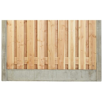 De gevoelige delen van de schutting die in de grond komen te staan, zoals de palen en onderplaten, worden gemaakt van beton. De kopmaat van deze duurzame betonpalen is 10x10cm en hebben een totale lengte van 2,8m. Aangezien 80cm van deze palen onder de grond wordt geplaatst, komt de zichtbare lengte van de palen uit op 2m. Je kunt de houtbetonschutting naar eigen smaak samenstellen, kies bijvoorbeeld voor lichtgrijs of antracietkleurig beton met een gladde afwerking of rotsmotief. Dit rotsmotief is aan beide zijden zichtbaar, zodat je buren er ook van kunnen genieten.