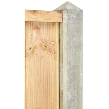 De gevoelige delen van de schutting die in de grond komen te staan, zoals de palen en onderplaten, worden gemaakt van beton. De kopmaat van deze duurzame betonpalen is 10x10cm en hebben een totale lengte van 2,8m. Aangezien 80cm van deze palen onder de grond wordt geplaatst, komt de zichtbare lengte van de palen uit op 2m. Je kunt de houtbetonschutting naar eigen smaak samenstellen, kies bijvoorbeeld voor lichtgrijs of antracietkleurig beton met een gladde afwerking of rotsmotief. Dit rotsmotief is aan beide zijden zichtbaar, zodat je buren er ook van kunnen genieten.