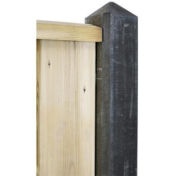 De gevoelige delen van de schutting die in de grond komen te staan, zoals de palen en onderplaten, worden gemaakt van beton. De kopmaat van deze duurzame betonpalen is 10x10cm en hebben een totale lengte van 2,8m. Aangezien 80cm van deze palen onder de grond wordt geplaatst, komt de zichtbare lengte van de palen uit op 2m. Je kunt de houtbetonschutting naar eigen smaak samenstellen, kies bijvoorbeeld voor lichtgrijs of antracietkleurig beton met een gladde afwerking of rotsmotief. Dit rotsmotief is aan beide zijden zichtbaar, zodat je buren er ook van kunnen genieten.
