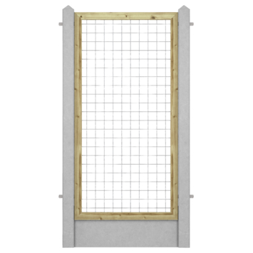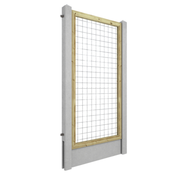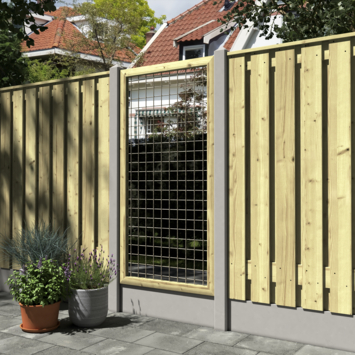 Bij aanschaf van 5 meter aan houtbetonschutting kun je een extra elementen toevoegen zoals een gaasscherm. Het gaaspaneel is geschikt om klimplanten en bloemen hier tegenop te laten groeien. Dit scherm past goed bij de houtbetonschutting grijs grenen (artikel 193908).