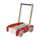 De houten blokkenwagen bevat 42 blokken. Het heeft een duwstang met een hoogte van 42 cm. Dit speelgoed is geschikt voor kinderen vanaf 1 jaar.