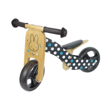 Met deze vrolijke loopfiets kan uw kind goed leren balanceren. De loopfiets kan in een handomdraai omgezet worden in een driewieler en weer terug. Het zadel is verstelbaar in hoogte, zodat het als het ware meegroeit met uw kindje. Het frame is gemaakt van duurzaam hout. De wieltjes zijn gemaakt van zacht kunststof, waardoor ze weinig geluid maken en geschikt zijn voor zowel binnen als buiten! De houten loopfiets is voorzien van een leuk motiefje met afbeeldingen van Nijntje.