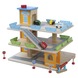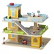 De houten garage is opgebouwd uit drie etages en heeft een bedienbare lift. Met de meegeleverde auto's, verkeersborden en slagboom beleven kinderen veel speelplezier. De houten garage is geschikt voor kinderen vanaf 3 jaar.