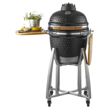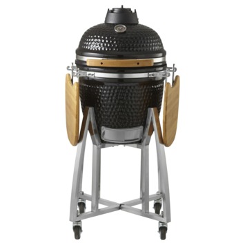 Op zoek naar een stevige barbecue die zorgt voor een stuk mals vlees? Ga dan voor de Barbecue Osaka 54cm - zwart. De zwarte, eivormige barbecue is gemaakt van keramiek, een materiaal dat hitte goed vasthoudt en een constante temperatuur in stand houdt. Deze luchtcirculatie zorgt vervolgens voor extra mals vlees of vis. Om deze reden is Barbecue Osaka 54cm - zwart geschikt voor de bereiding van slow cooking-gerechten. Het betreft hier een houtskoolbarbecue, de echte 'traditionele' barbecue voor die typische rooksmaak. De roestvaststalen grill heeft een diameter van 46,5cm, zodat er genoeg ruimte is voor het bakken, grillen en stomen van verschillende ingrediënten voor maar liefst 8 personen tegelijk. De handige bamboe-zijtafels zorgen voor extra werkruimte. Dankzij het onderstel inclusief wielen, verplaats je deze BBQ eenvoudig naar een andere plek. Kortom: de ideale BBQ voor in iedere tuin.