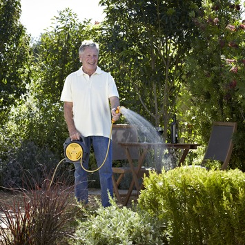 De Hozelock slangbox Pico Reel is een zeer compacte en lichtgewicht (1,9 kg) slangbox met 10 meter(Ø 9 mm) slang. Voorzien van een soepel oprolmechanisme met grote draaiknop en compleet geleverd inclusief alle benodigde aansluitstukken en een Multifunctionele broes met vijf sproeistanden. Ideaal voor kleine tuinen, patio, terras of balkon. De Pico Reel kan zowel gebruikt worden als vrijstaande, verplaatsbare slanghaspel of worden gedragen met behulp van de handige draaggreep.