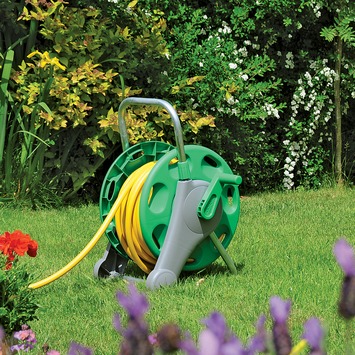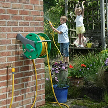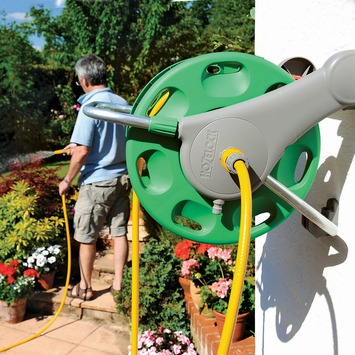 De Hozelock slanghaspel en wandslanghouder is een volledig gemonteerde slanghaspel voor maximaal 45 meter (Ø12,5 mm) slang. Uitgerust met 25 meter Ø 12,5 mm Select slang, alle benodigde aansluitstukken en een verstelbare tuinspuit van straal tot nevel. Dit model kan gebruikt worden als vrijstaande, verplaatsbare slanghaspel of als muurhaspel met behulp van de bijgeleverde wandsteun.