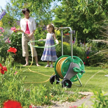 De Hozelock slangwagen is een stabiele en makkelijk verrijdbare slangenwagen met een capaciteit voor maximaal 60 meter (Ø12,5 mm) slang ( 50 meter /Ø 15 mm (5/8") of 35 meter Ø 19 mm slang). Volledig gemonteerd en direct klaar voor gebruik. Deze slangenwagen wordt compleet geleverd met 50 meter(Ø12,5 mm) Select slang, alle benodigde aansluitstukken en een verstelbare tuinspuit. Na gebruik kan de wagen eenvoudig en compact worden opgeborgen dankzij de inschuifbare handgreep. De handgreep is voorzien van soft grip en een handige houder voor de slang.