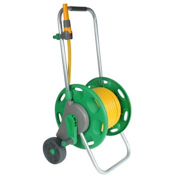 De Hozelock slangwagen is een stabiele en makkelijk verrijdbare slangenwagen met een capaciteit voor maximaal 60 meter (Ø12,5 mm) slang ( 50 meter /Ø 15 mm (5/8") of 35 meter Ø 19 mm slang). Volledig gemonteerd en direct klaar voor gebruik. Deze slangenwagen wordt compleet geleverd met 30 meter(Ø12,5 mm) Select slang, alle benodigde aansluitstukken en een verstelbare tuinspuit. Na gebruik kan de wagen eenvoudig en compact worden opgeborgen dankzij de inschuifbare handgreep. De handgreep is voorzien van soft grip en een houder voor de slang.