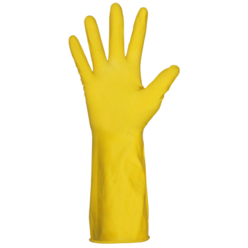 Deze gele huishoudhandschoenen in maat M zijn ideaal voor verschillende huishoudelijke klussen. Ze bieden bescherming voor je handen en houden ze schoon tijdens het schoonmaken. Dankzij de lange manchetten blijven je armen ook droog. De handschoenen hebben een uitstekende grip, zelfs bij klussen met water.