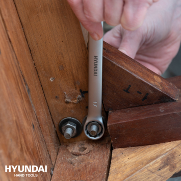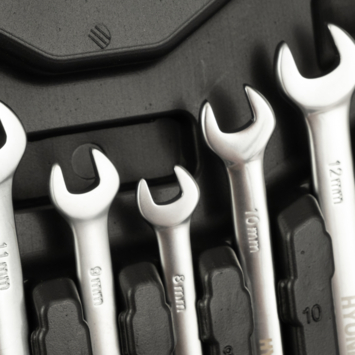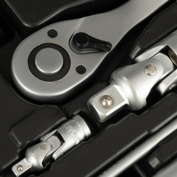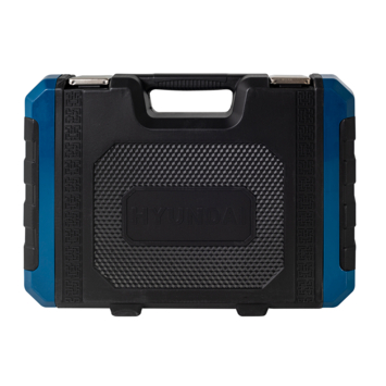 Hyundai chroom-vanadium-stalen 61-delig dop en steeksleutel set met 1/4'' ratel-sleutel (72tanden) en 1/2” ratelsleutel (72tanden) met ergonomische handgreep, Inclusief verlengstukken, adapter, doppen en inbussleutels in de maten 1,5-2-2,5mm, De set wordt geleverd in een fraaie kunststof koffer met versterkte hoeken en metalen afsluitclips, Productvoordelen: - 61-delig - Chroom-vanadium staal - Ergonomisch handvat Unieke Productspecificaties: - Merk: Hyundai - Afmeting (in verpakking): 10,2x41x30,3 cm (LxBxH) - Gewicht: 10,2 kilogram - Materiaal: Kunststof en Chroom-Vanadium staal - Kleur: Zwart, Blauw en Grijs Inhoud: - 1/2" ratel sleutel 72T - 1/2" bougie 16mm, 21mm - 1/2" drieweg adapter 1/2/, 3/8 - 1/2" verlengstuk 5", 10" - 1/2 "universele verbinding - 1/2" Socket 10-11-12-13-14-15-16-17-18-19-20-21-22-23-24-27-30-32mm - 1/4 "ratel sleutel 72T - 1/4" spinner handvat - 1/4" verlengstuk 2",4" - 1/4" verlengstuk flex - 1/4" T-schuifstang 110mm - 1/4 "universele verbinding - 1/4" Socket 4-4,5-5,5-6-7-8-9-10-11-12-13-14mm - 3-delige inbussleutel 1,5-2-2,5 - Combinatiesleutels 8-9-10-11-12-13-14-15-16-17-18-19mm