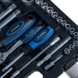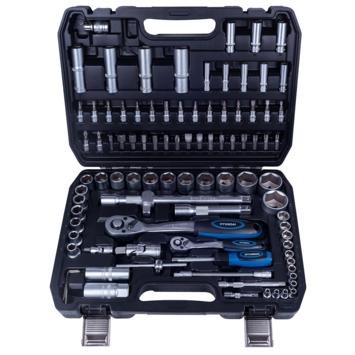 Hyundai 94dlg Gereedschapsset 1/2""DR, Extension Bar 125mm,250mm; 1/2""DR,Three way adaptor; 1/2""DR,Hexagon bit coupler 8mm; 1/2""DR,Deep Socket 14-15-17-19mm 1/2""DR,Socket 10-11-12-13-14-15-16-17-18-19-20-21-22-23-24-27-30-32mm 1/2""DR,Spark plug socket 16mm,21mm; 1/2""DR, Universal Joint 1/4""DR,Adaptor 30mm 1/4""DR,Socket4-4,5-5-5,5-6-7-8-9-10-11-12-13-14mm 1/4""DR,Deep Socket 6-7-8-9-10-12-13mm 1/4""DR Extension Bar 50mm,100mm 1/4""DR Flexible extension bar 150mm 1/4 DR,Sliding T-bar 1/4""DR,Spinner Handle 1/4""DR,Universal Joint 1/4""DR,Bit socket T8-10-15-20-25-30,HW3-4-5-6,PH1-2,PZ1-2,FD4-5,5-7; Bit 5/16*30mmL T40-45-50-55-HW8-10-12-14-PH3-4-FD8-10-12,PZ3-4; Hex key wrench 1,5-2-2,5mm; 1/2""DR, Ratchet Wrench 72T 1/4""DR, Ratchet Wrench 72T.