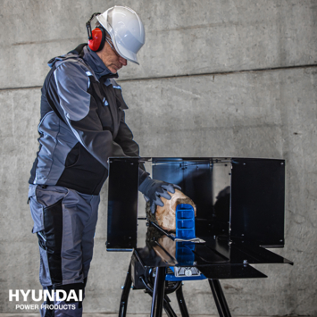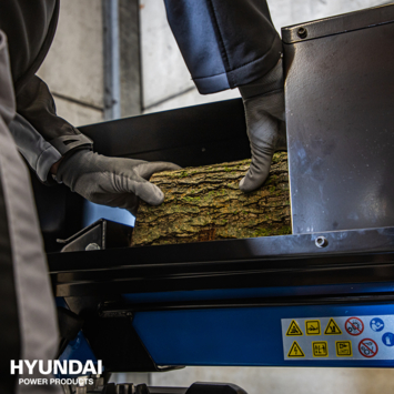 Horizontale Hyundai kloof-machine met een kloofkracht van 6 ton. Deze machine is geschikt voor zowel particulier als (semi-)professioneel-gebruik. De machine voldoet aan de nieuwe wetgeving (sedert 2019) en is rondom voorzien van beschermkappen welke optimale veiligheid garanderen tijdens het kloven. De kloof-machine is standaard voorzien van een een veilige twee-handen-bediening alsmede transportwielen met antilek-banden.