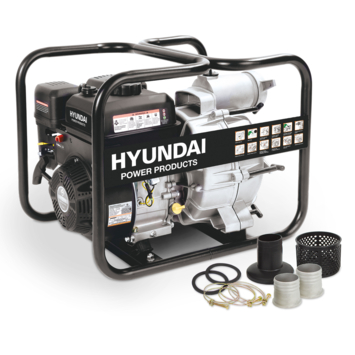 Deze duurzame Hyundai 80 mm waterpomp heeft een krachtige 208 cc OHV-benzinemotor. Deze machine is geschikt voor verpompen van ongeraffineerd en vuil water. Mede door de afmeting van de 80 mm (3”) in- en uitlaat levert de machine een indrukwekkende en betrouwbare pompkracht met een stroomsnelheid van 750 L per minuut en kunnen deeltjes met een diameter tot 22 mm worden verpompt. Deze waterpomp is niet geschikt voor gebruik met zeewater of andere chemicaliën, omdat dit de interne onderdelen kan beschadigen. De machine heeft een aanzuighoogte van 7 m en een totale opvoerhoogte van 25 m. Met een gewicht van slechts 38,5 kg is dit een relatieve lichtgewicht waterpomp die is gebouwd met transport en opslag in gedachten. Het stevige open frame beschermt de pomp tegen schokken en stoten welke ook functioneert ook als handige handgrepen.