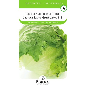 IJsbergsla (Lactuca Sativa Great Lakes 118) Traagschietende, krokante sla, die in de koelkast heel lang goed blijft. De IJsbergsla Zaadjes bloeien in April, Mei, Juni, Juli. Dit is een Eenjarig plant Deze zaadjes kunnen gepland worden in April, Mei, Juni, Juli en ontkiemen in 7-14 dagen.