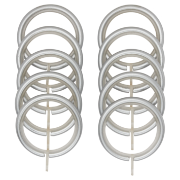 Deze gegalvaniseerde gordijnringen zijn geschikt voor 28 mm gordijnroedes. De ringen hebben een stoere en industriële uitstraling, worden geleverd per 10 stuks en zijn inclusief een transparant kunststof inlay waardoor deze soepel over de gordijnroede heen schuiven. De ringen zijn voorzien van een oog waar de gordijnhaken in bevestigd kunnen worden. Gemiddeld gebruik je 10 ringen per meter breedte.
