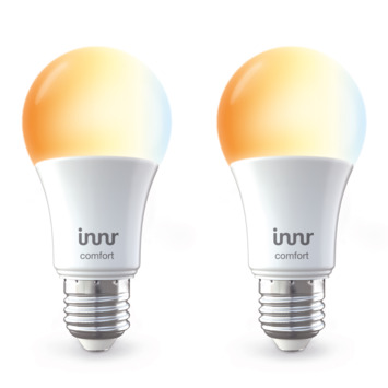 De bulbvormige Innr smart Led lamp is een energiezuinig alternatief voor halogeen, spaarlampen en gloeilampen. Deze lichtbron heeft een lichtopbrengst van 806 lumen en een kleurtemperatuur van 2200 tot maximaal 5000 kelvin. Dit is een warm witte lichtkleur tot een koud witte lichtkleur. De verlichting in huis is in te stellen door middel van de Smarthome applicatie. Deze bedien je met je telefoon, tablet of afstandsbediening. Dankzij de de 2-pack Innr lampen en de Smarthome applicatie, creëer jij zelf de gewenste sfeer in huis. De lamp heeft een E27 fitting en past hiermee in armaturen met een grote fitting. De lichtbron heeft een wattage van 9 Watt en valt onder energieklasse A+. Dit is één van de meest zuinige energieklasses.